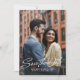 Stilfull två-foto bröllopskript spara datumet