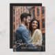 Denna stilrena save the date-funktion har ett retroinspirerat skrivsätt "save the date" i vitt på en hel vertikal bild tillsammans med en enkel anpassad text. Baksidan av denna moderna save the date har en chic svart rand tillsammans med en horisontell bild, plats för ett anpassat meddelande och en QR-kod till er bröllapswebbplats. Denna vertikala design är bra för ett trendigt och stilrent par, och det är ett bra sätt för det förlovade paret att dela bröllopsinformation med vänner och familj. Hitta fler färger och stilar i kollektionen av Lea Delaveris Design. Finns även som digital nedladdning för save the date.
