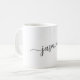 Flickaktig minimalist enkel svart och vit monogram namn signatur skript anpassad personlig kaffemugg. Dessa mönster har ditt förnamn i en snygg handstils- swash-svans font signatur typografi svart skrift på vit bakgrund. Dessa är lätta att anpassa. Snygg och feminin husvärmningspresent, även för födelsedag, mors dag, bröllop, 16-års födelsedagsfest, brud shower, baby shower, för examensfest och den är för flickan som älskar unika snygga saker.