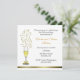 Elegant bröllopsjubileumsfestinbjudan, gjord av vitt återvunnet kartong med svart text och guldblekande detaljer. Ett champagneglas, med en söt guldbåge på skaftet, har gnistrande stjärnor som kommer ut från toppen av glaset, och en guldfärgad rand längst ner fullbordar denna eleganta inbjudan som är redo för att du ska anpassa den för din fest. Om du föredrar att ta bort texten för RSVP kan du göra det. Matchande svars kort för RSVP finns tillgängliga.