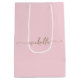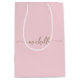 Elegant Modern Rosa delikat Glam Förgylld Initial Namn Script Signatur Anpassad Personlig Presentpåse. Denna design har ditt förnamn i en vacker handskriven svansfont signatur typografi (eller kalligrafi) i guld på ljus rosa eller babyrosa bakgrund. Dessa är lätta att anpassa. Denna feminina presentpåse passar bra som husvärmegåva, även för födelsedag, sweet 16 födelsedagsfest, bröllop, bröllopsfest, baby shower, mors dag, för examenspresent och den är för tjejen som älskar unik elegans.