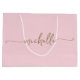 Elegant Modern Rosa delikat Glam Guld Monogram Namn Script Signatur Anpassad Personlig Presentpåse. Denna design har ditt förnamn i en vacker handskriven svansfont signatur typografi (eller kalligrafi) i guld på ljus rosa eller babyrosa bakgrund. Dessa är lätta att anpassa. Denna feminina presentpåse är bra som husvärmegåva, även för födelsedag, mors dag, bröllop, sweet 16 födelsedagsfest, bröllopsfest, baby shower, för examenspresent och den är för tjejen som älskar unik elegans.