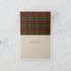 Färgglatt tackkort, gjort i det traditionella röda, gröna, blå, gula och vita klan Forrester rutmönstret. Ett sandfärgat högerhörn har grafik av en lädersträngbåge som kant, mellan rutmönstret och sandfärgade bakgrunden. Svart text som lyder Tack, med svart anpassad text, redo att anpassas för dina behov.