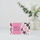 Nätt mammanätverkandekort som göras i rosa och svart blommor, mot en vitbakgrund. Diagram av ett dekorativt rosa textområde, har den svart textredot som ska personifieras. En fast rosa drar tillbaka och svärtar text, tillfogar mer text, om du önskar. Underbaren tittar mammakortet, det är underbar för att ordna lekdata, med annan mammor och att sitta barnvakt co-ops.