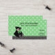 Stilfullt mammas kort gjort i ett ljust grönt och vitt prickmönster, med ett svart och vitt prickigt band längst ner. Grafiken föreställer en söt svart teddybjörn med en stor grön rosett som dekorerar framsidan längst ner. Anpassa all text efter dina behov. Perfekt för att planera lekdatum, fester och barnvakt med andra mammor.