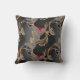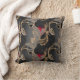 Stilfull och elegant vintage röd svart och guld spetsmönster kudde med guldbesatta blomster spetsar på en rökig grå svart bakgrund.