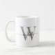 Elegant, minimalist, modern, vit och grå monogram initial bokstav feminint signaturskript anpassad personlig kaffemugg. Denna minimalistiska design med anpassat namn i en vacker handskriven svansfont typografi/ kalligrafi, monogram mall, lätt att anpassa dem. Stor feminint stilren husvärmningspresent, även för födelsedag, bröllopsfest, bröllop, mors dag, sweet 16 födelsedagsfest, baby shower, för examensfest och den är för flickan som älskar stilrena minimala saker.
