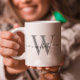 Stilfullt vitt monogramnamn kalligrafiskrift kaffemugg