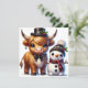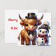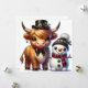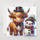Sprid festlig glädje med detta förtjusande platta julkort som visar en stilig Highlandko som bär en toppig hatt och fluga, åtföljd av en gladlynt snöman. En rolig och hjärtvärmande design för att få vem som helst att le under denna högtidssäsong