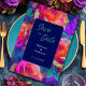 Meddela om din kommande fest med detta snygga, färgglada och ljusa blommiga "save the date"-kort med livfull akvarell blomsterkonst och elegant botanisk grönska. Inspirerad av charmen i en färgrik botanisk trädgård, omger ljusa blommor i nyanser av rosa, lila, gult och blått din annons med frisk skönhet. Akvarellens blommiga design ger en konstnärlig och romantisk touch som speglar den glada känslan av sommar-, vårbröllop och naturinspirerade firanden.