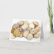 Underbart tackkort gjort med ett foto på en fin samling snigelskal. Vit text, med skugga, lyder Tack så mycket, på framsidan av kortet. Svart skrivstiltext inuti kortet är redo att anpassas. Vackra tackkort för efter en strandinspirerad bröllop.