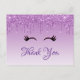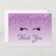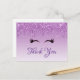 Tack-kort med en trendig stilren design. Bakgrunden är en lila gradientfärg med falskt glittrande glitter som droppar ner från toppen. Ett par flickaktiga söta ögonfransar under glittret.