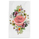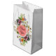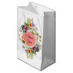 Vackra bröllos duschaartyg presentförpackningar gjorda i vitt, med färgglada vildblommor, på framsidan och baksidan av påsen. Ett runt korall- och guldtextområde har anpassad svart text som är redo att anpassas.
