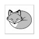 Stiliserad bläckillustration av en hoprullad sovande räv.