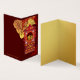 Utformning av stiliserat kinesiskt palanquin med ett gyllene pappert snitt av en Ox med dess ideogram + kinesiskt hälsning + stort 2021 + kinesiskt rött ram + gyllene brunaktiga moln. Utformning på lodräts vikbara kort med mörkens röda bakgrund + guldtexturerad papper (bildutskriven) inuti. Du kan enkelt ändra bakgrunden färg och placeringen av alla inslag i designen genom att klicka på knappen Anpassa. Matchande hälsningskort, vykort för helgdagar, inbjudningar, hantverksprodukter, party-förråd och annat.. Perfekt för Kinas nya år Ox 2021.