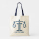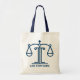 Blåtonad logotyp för juristbyrå med en stiliserad rättvisans våg.