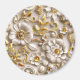 En vacker arrangemang av stiliserade blommor och löv visar mjuk pastellform färg med en antydan av metallskal. De komplicerade detaljerna belyser en harmonisk blandning av former och struktur, som skapar en serensammansättning och elegant.