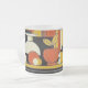 Stiliserade frukter och flaskor smälter sömlöst ihop med en geometrisk struktur som skapar ett landskap som känns både modernt och lekfullt.