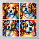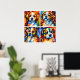 Det här är en söt poster perfekt för ett hund älskare med fyra snygga, stiliserade valpar i pulserande färg.