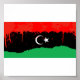 Stiliserad flagga av Libyen före kuppen 1969 som ledde till den nuvarande regimen. Denna flagga har blivit flagga av upproret mot Qaddafi.