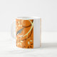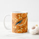 Decorative Red Brested Nuthatch mugg med orange bakgrund och löv mönster kring gren-snurrar