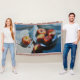 A clean, minimalist still life painted in precise realism. Peaches rest on a subtly patterned plate and crisp white cloth, illuminated by directional natural light. A modern yet timeless artwork that suits Scandinavian, minimalist, and contemporary interiors.