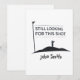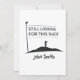 This bold black-and-white golf humor design features the phrase “Still Looking For This Shot” paired with a customizable name. A clean silhouette of a golf flag, subtle landscape, and a photographer figure create a clever visual story about patience and the endless pursuit of the perfect shot. Strong contrast and minimalist styling give this design a timeless look that blends golf culture with understated humor.