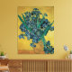 Stilleben: Vas med Iris på gul bakgrund av Vincent van Gogh är en vintage postimpressionistisk stilleben- blomster- naturmålning i finkonststil. En fantastisk bukett vackra lila irisar från en vårträdgård i en vas. Klassiska franska landsbygdsfärger med guld- och blåtoner.