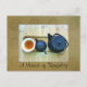 Det är enkelt att anpassa detta stilleben fotografi vykort design av en tekopp, tekanna och varmvattenkanna på en rektangulär träbricka. Denna duk är placerad på ett väl använt trädiskbord. Fotografiet är placerat inom en rustik spiralformad bred brun ram. Anpassa mallfältet med dina egna ord, namn, initialer eller ta bort texten och/eller klicka på anpassa för att välja typsnitt, storlek och färg du föredrar.