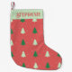 Rosa och grönt julgran mönster med snö och hjärtan. Anpassat namn.