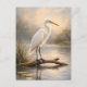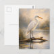 En elegant egret står tyst i lugnt kärrvatten medan mjukt gyllene ljus reflekteras över det fredliga våtmarkslandskapet.