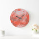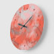 Vacker väggklocka med samtida mörka och ljusa korallröda, och mjuka pastellrosa färgade fyrkantiga och runda mönsterdesign. Utbroderad retro fantasi design är gjord för den hippa trendskaparen, grafiska digitala moderna motivdesignern, eller älskare av vintage 60-, 70- och 80-talets art deco och klassiska nouveau-dekor.