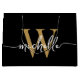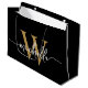 Tjejaktig Stilren Modern Elegant Svart och Guld Monogram Initial Namn Script Anpassad Personlig Presentpåse. Denna design har ett förnamn i en snygg handskriven svansfont med kalligrafi (eller typografi) med monograminitialer i guld och vitt på svart bakgrund. Lätt att anpassa. Denna feminina presentpåse är bra som hus-inflyttningspresent, även för födelsedag, bröllop, 16-årsfest, mors dag, bröllopsfest, baby shower, som present vid examensfest och den är för tjejen som älskar trendiga unika saker.