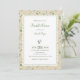 Den här vackra inbjudan har ett vackert franskt landmönster med vita prästkragar, gröna blad och vinrankor på en krämfärgad bakgrund. Designen är baserad på handmålade blommor. Det påminner dig om en lantlig trädgård! Denna produkt kan anpassas med din text. Baksidan av inbjudan har vita prästkragar, gröna blad och vinrankor på en krämfärgad bakgrund. Det är perfekt för din stugtema-arrangemang.