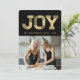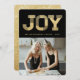 Elegant snygg JOY-typografi Block falskt guld glitter på svart, modern jul fotokort.
