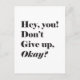 Hej, du! Upp med Ge, okej? Designen har stiliserad skrift i Black. Det här är Motivational Quote! Det är en perfekt för någon som behöver lite uppmuntran