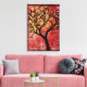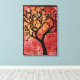Art av Marta Harvey. Den här träd har sytts ihop på en röd målad duk. Pen & Bläck användes för gräns.
