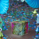Abstraktens linjedesign i ett gäng av olika färger, inklusive gult, grönt, rött och blått. De liknar hash-märkre eller hash-märken.