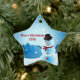 Stjärna-Formade prydnaden för snögubben den god jul gör ett nätt tillägg till din julgran. Gör också en underbar gåva. Skräddarsy texten som önskad.