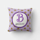 Denna monogramkudde är ett bra sätt att skapa en minnesvärd souvenir för någon speciell. Ett guldstjärnmönster framträder mot en lila bakgrund. Bokstaven B i ljust lila visas i en mittcirkel tillsammans med familjens namn. Anpassa enkelt färger och familjenamn efter eget önskemål. Bokstaven "B" kan inte anpassas på denna kudde. Om du letar efter en annan bokstav, besök vår butik.
