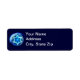 En blå, fyrkantig bild av en David-stjärna i en cirkel. Samma design finns på inbjudningar och kort.