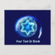 En blå och lila-tonad fractal bild av David (Magen David) omgiven av en snurrande cirkel. Anpassa genom att lägga till egen text.