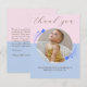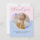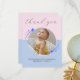 Tack för att du firar vår första födelsedag. Tack vare kortet finns ett cirkulärt foto av ditt barn omgivet av vita, blå stjärnor på rosa och blå bakgrund. Tack för att kortet är könsneutralt och har lagts till med skriptkalligrafi. Det är ett minimalistiskt och modernt tack som du kort och stjärnorna tillför till den enkla men magiska beröringen. Anpassa med din egen information.