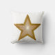 Modern design med en "skugg" guld och vit stjärna på en vit bakgrund - ditt val av text på baksidan. Dekorativ kudde med ett anpassade som du kan anpassa med din egen text, bilder och dina idéer. Det här är en digitalbild som skapas med originalfotografier och digitalteknik och som trycks på tyg, som inte skiner eller innehåller riktiga miniatyrbilder.