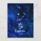 Stjärnbilden Stenbocken Galaxdesign med modern borstad scriptfont, mörkblå himmelsinspirerad vattenfärg bakgrundstextur, Lysande stjärnkonstellation och symbolen för Stenbocken. Modernt astrologiskt födelsestjärntecken, perfekt för alla Stenbockens födelsedag 22 december - 19 januari!