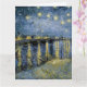Halmtäckta stugor vid Cordeville. Vincent Willem van Gogh. Nattlandskap i mörkblå och gula nyanser. Det finns en bro över floden. I förgrunden går en man och en kvinna längs vallen. Stjärnorna lyser på himlen. Reproduktion av berömda konstverk bilder i public domain.