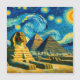Denna vackra design avbildar de stora pyramiderna och sfinxen i Egypten i Vincent Van Goghs stjärniga natt-stil.