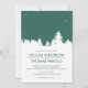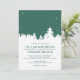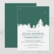 Denna moderna vinterbröllopsinbjudan har en smaragdgrön himmel med en krispig vit vinterskog. Bakgrundsfärgen kan ändras för att matcha ditt bröllopstema.