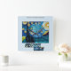 En väggklocka med konst inspirerad av Van Goghs Stjärnenatt.