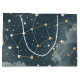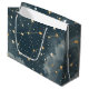 Mystisk stjärnbildsmönstrad presentpåse med gyllene stjärnor, himmelska linjer och drömmaktiga moln mot en mörk natthimmelbakgrund. Perfekt för de som älskar astrologi, stjärnskådare, astronomi-entusiaster, andliga sökare och alla som älskar kosmisk och himmelsinspirerad stil.